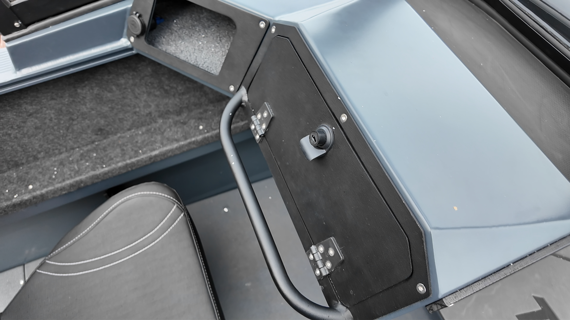 | 9 | Карманы по бортам, борта в носовой части, подконсольные полки обшиты карпетом | + |