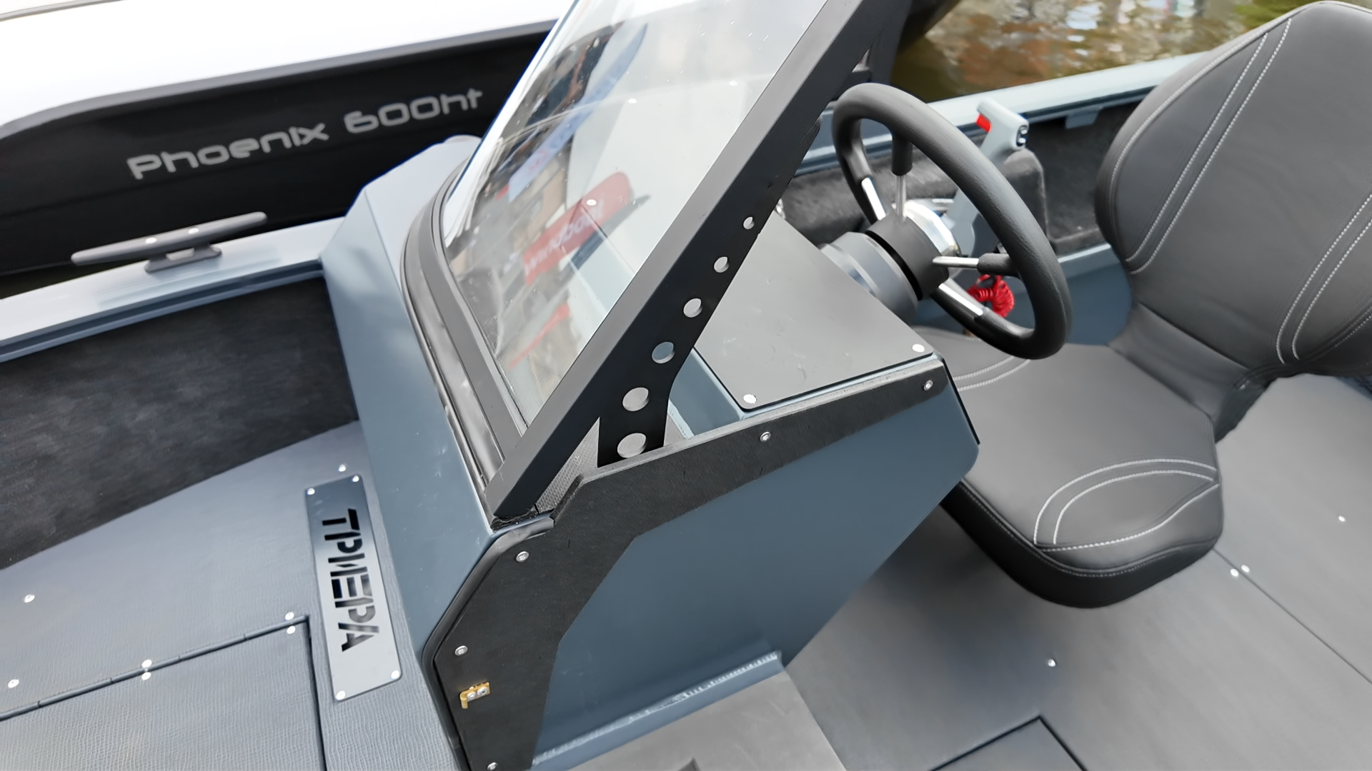 10 Карманы по бортам, борта в носовой части, подконсольные полки обшиты карпетом +