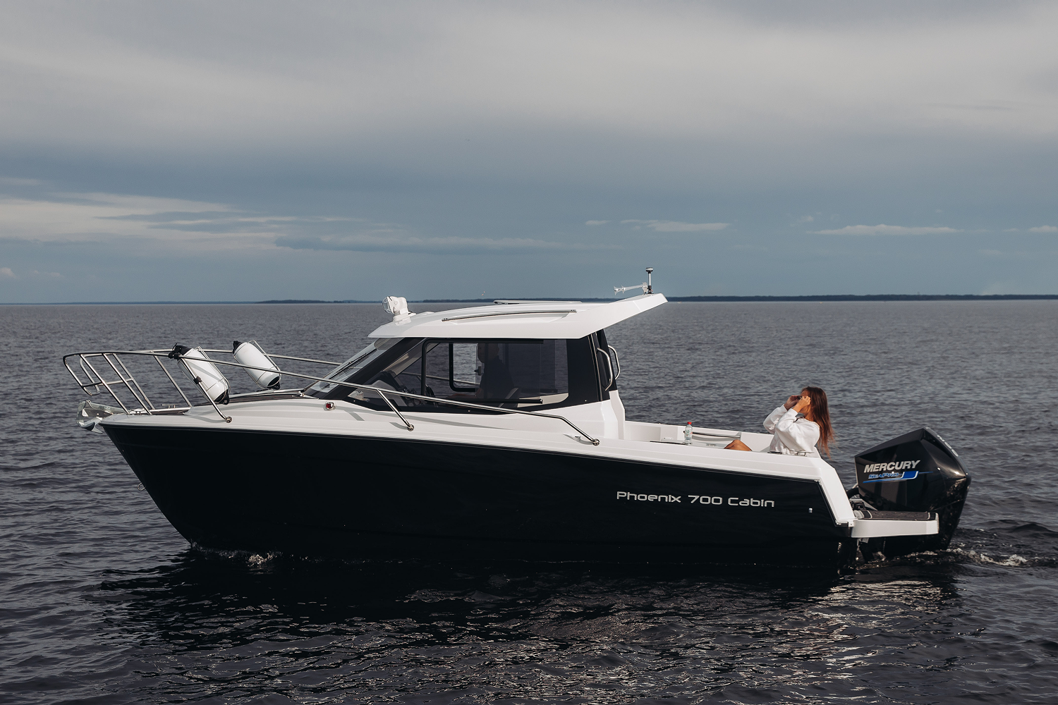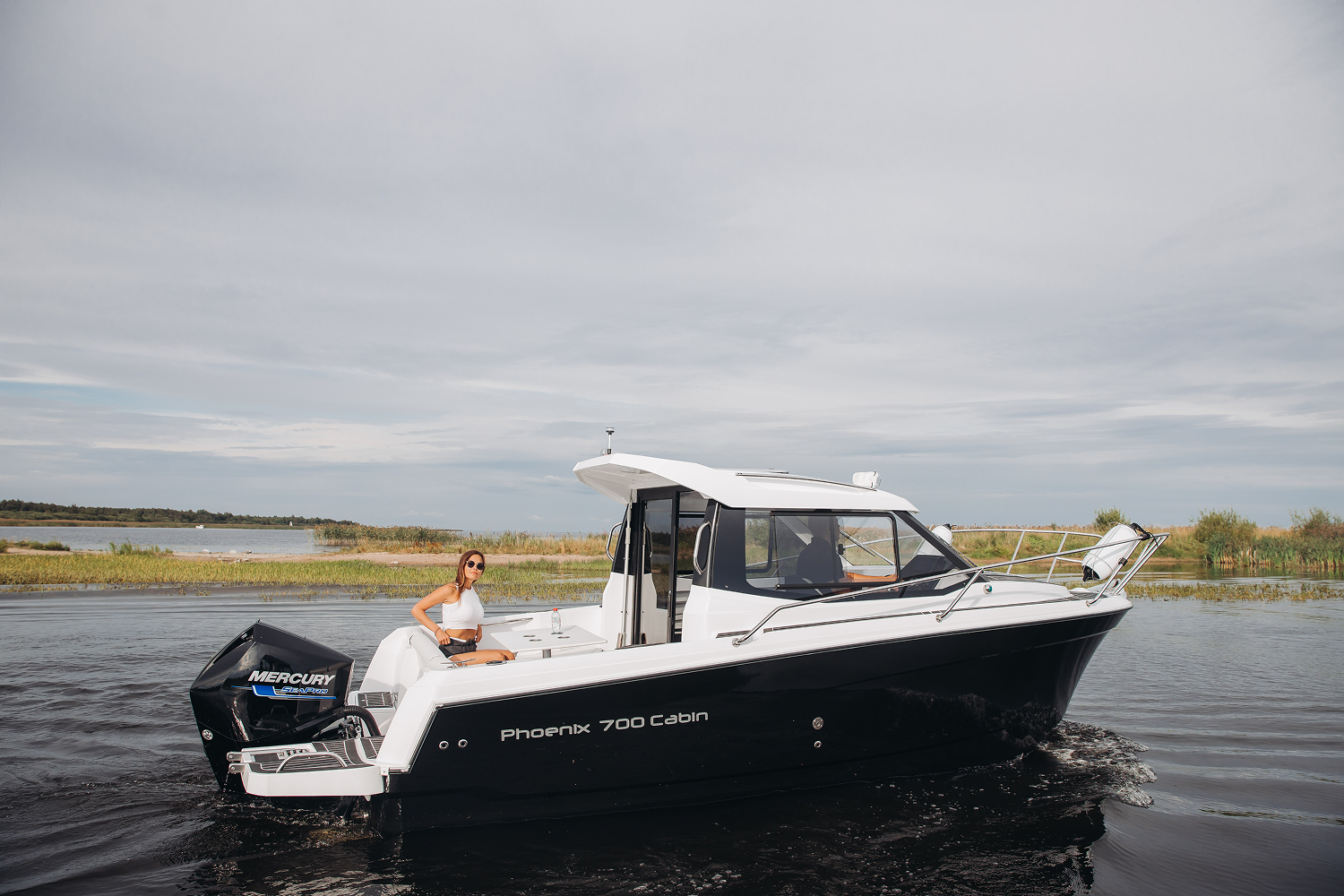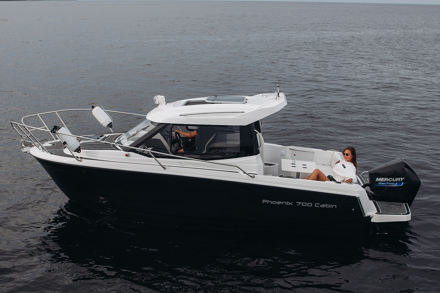 Мобильный, элегантный, многоцелевой катер Phoenix 700 Cabin, идеально подходит для водных прогулок в кругу семьи. Он обладает отличными мореходными качествами. Благодаря продуманной планировке внутри, в нем комфортно могут разместиться на ночлег 4 человека. Просторный кокпит оборудован Г-образным диваном, который раскладывается в комфортный лежак. Посредине размещён широкий обеденный стол. Гальюн и камбуз, оборудованный мойкой позволяет катеру быть полностью автономным и подходит для дальних путешествий с ночёвками.